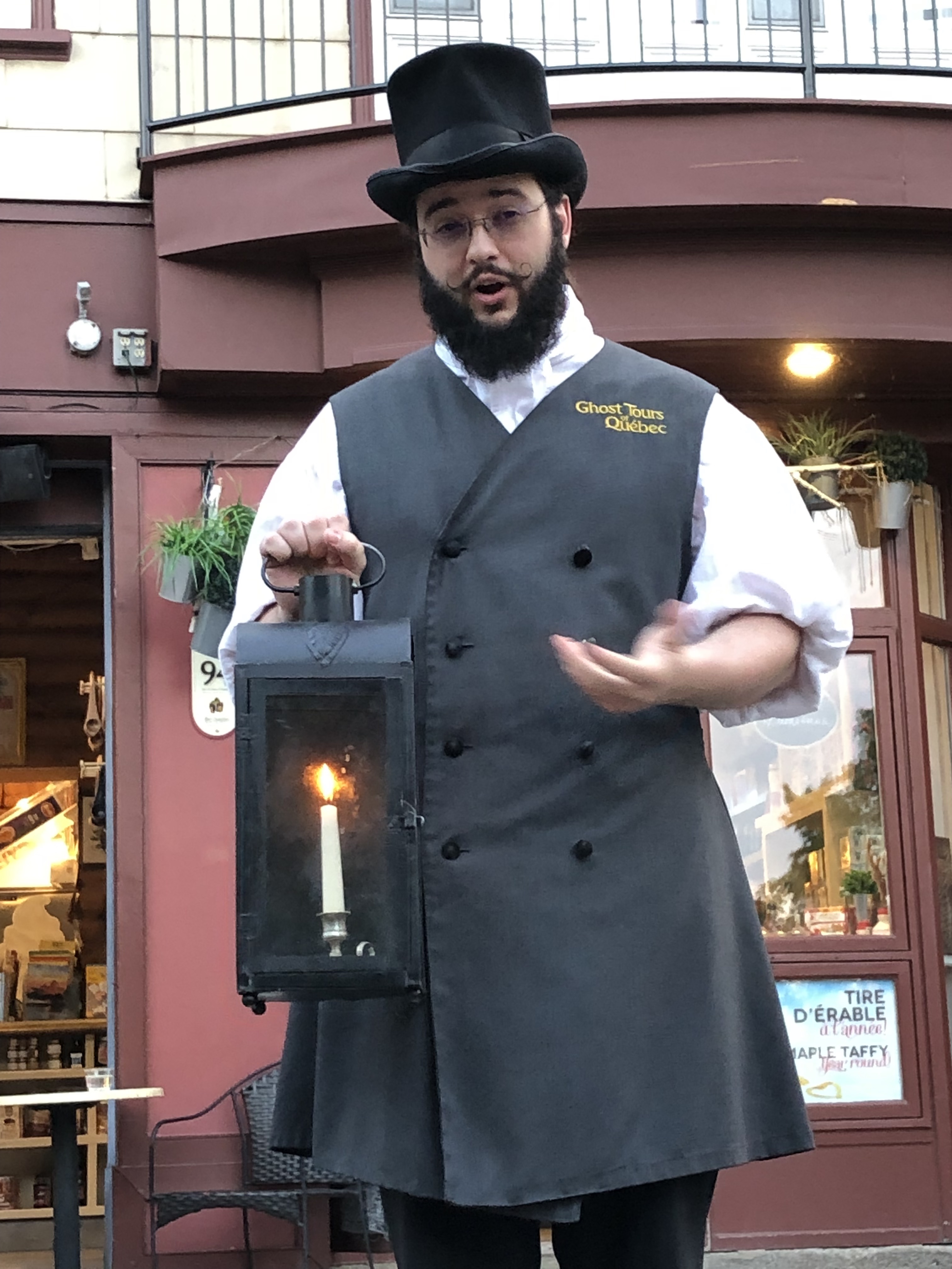 Time to get a little spooky! Old Quebec, where we were staying, was founded in the 17th century. With a city that old, you can imagine some terrible and haunting things have occurred within it walls over the last few hundred years — murders, executions, ghostly encounters, tragedies… We wanted to explore the town and hear some stories, so we decided to take a ghost tour.