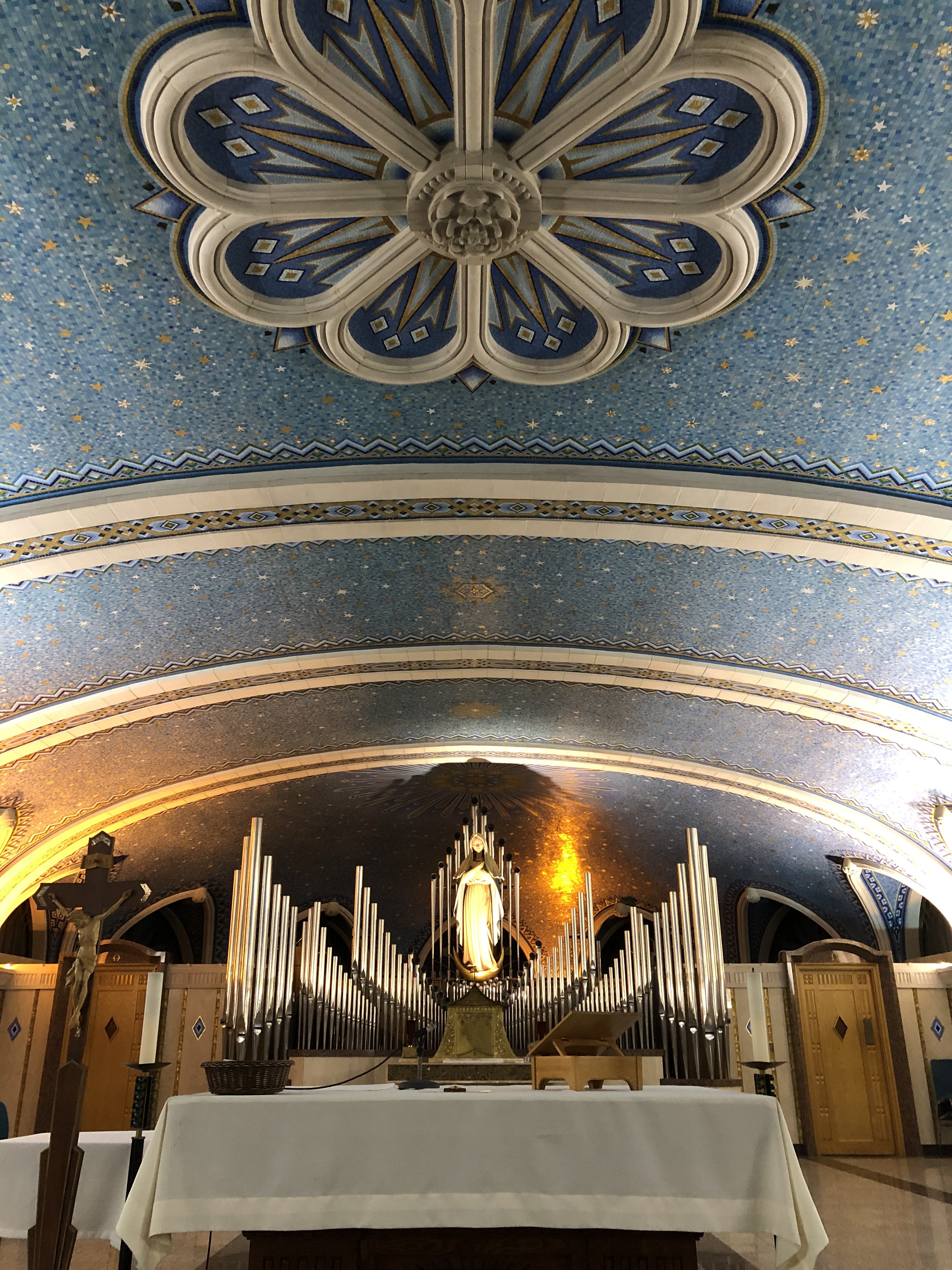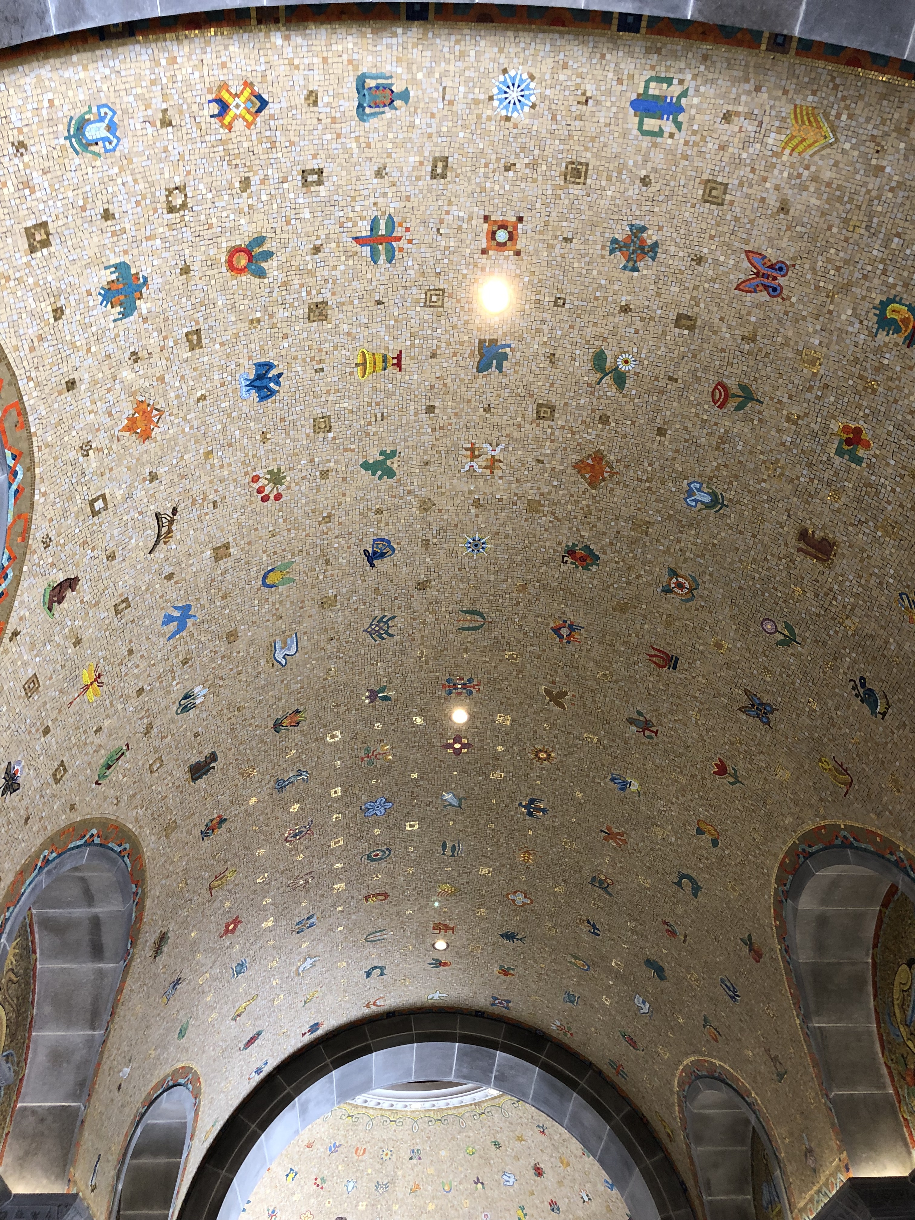 When you enter the shrine, the vestibule welcomes you with mosaics that celebrate creation. The signs of the zodiac and other symbols around the space represent the universe and time as a reminder that God created all of it. And we figured that out without a guidebook! It just screams of God’s love for all creatures.