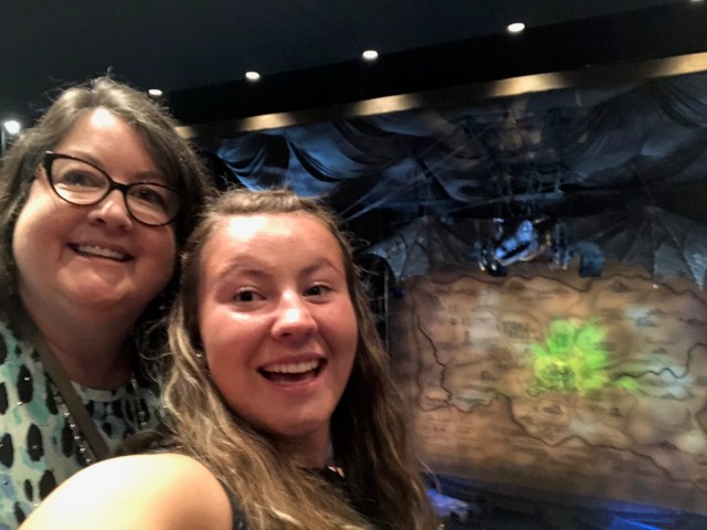 MM and Em in the mezzanine, with the Wicked set down below before the show.