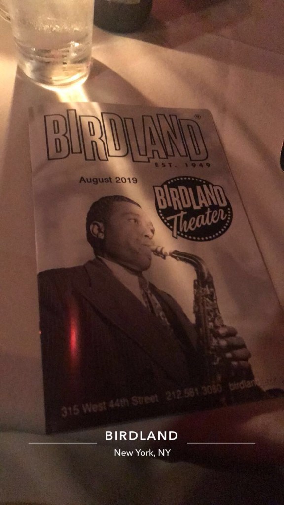On to the night in the Big Apple! For dinner, we went to the Birdland Jazz Club. It’s a famous jazz joint in the Birdland Theater on West 44th Street inspired by Charlie “Bird” Parker.