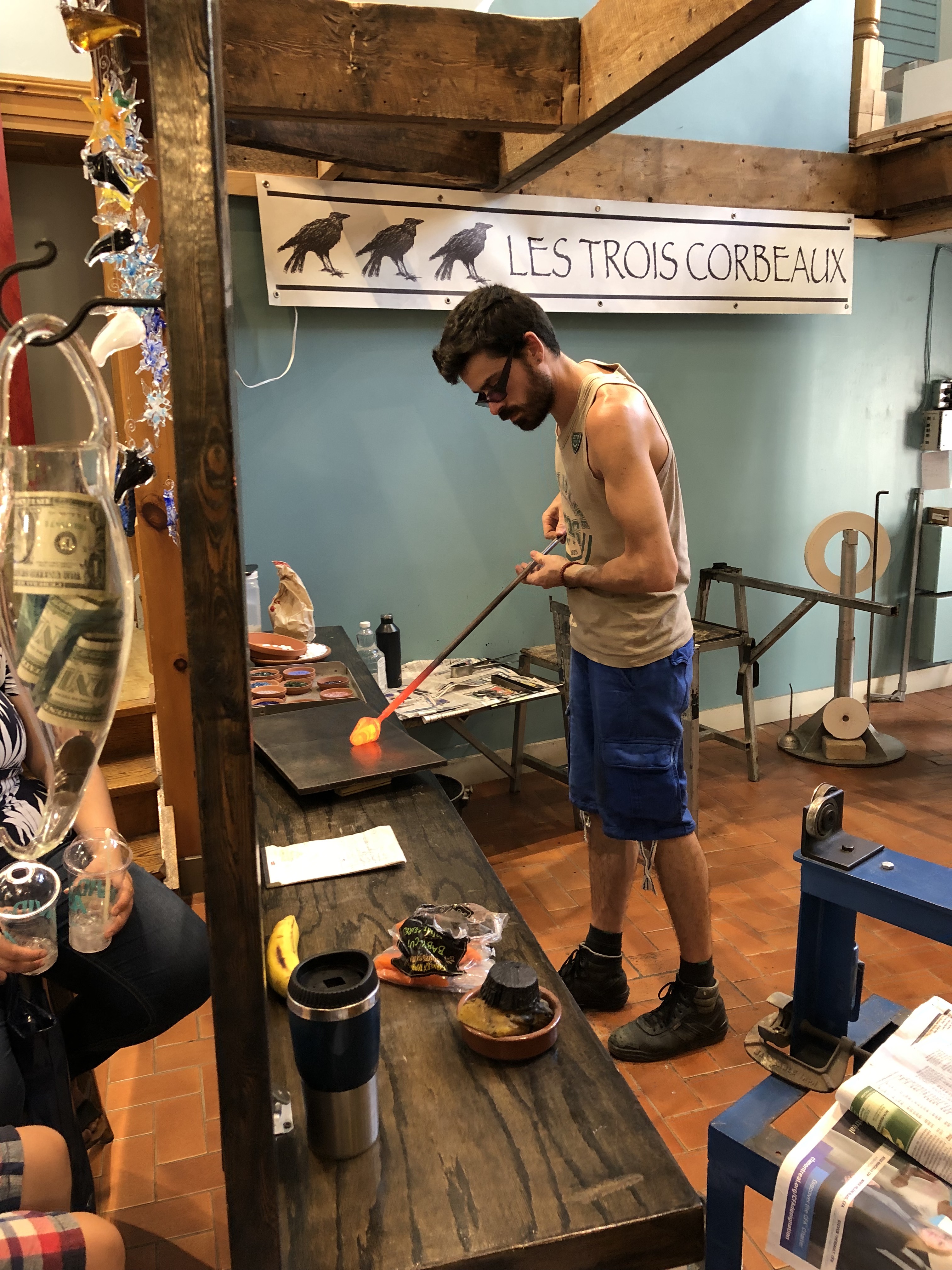 We encountered even more fire at a glassblowers’ shop. One artisan was making a hummingbird; this one was making an ornament. Both worked with such speed and precision that it felt like a show — and they had a tip jar…