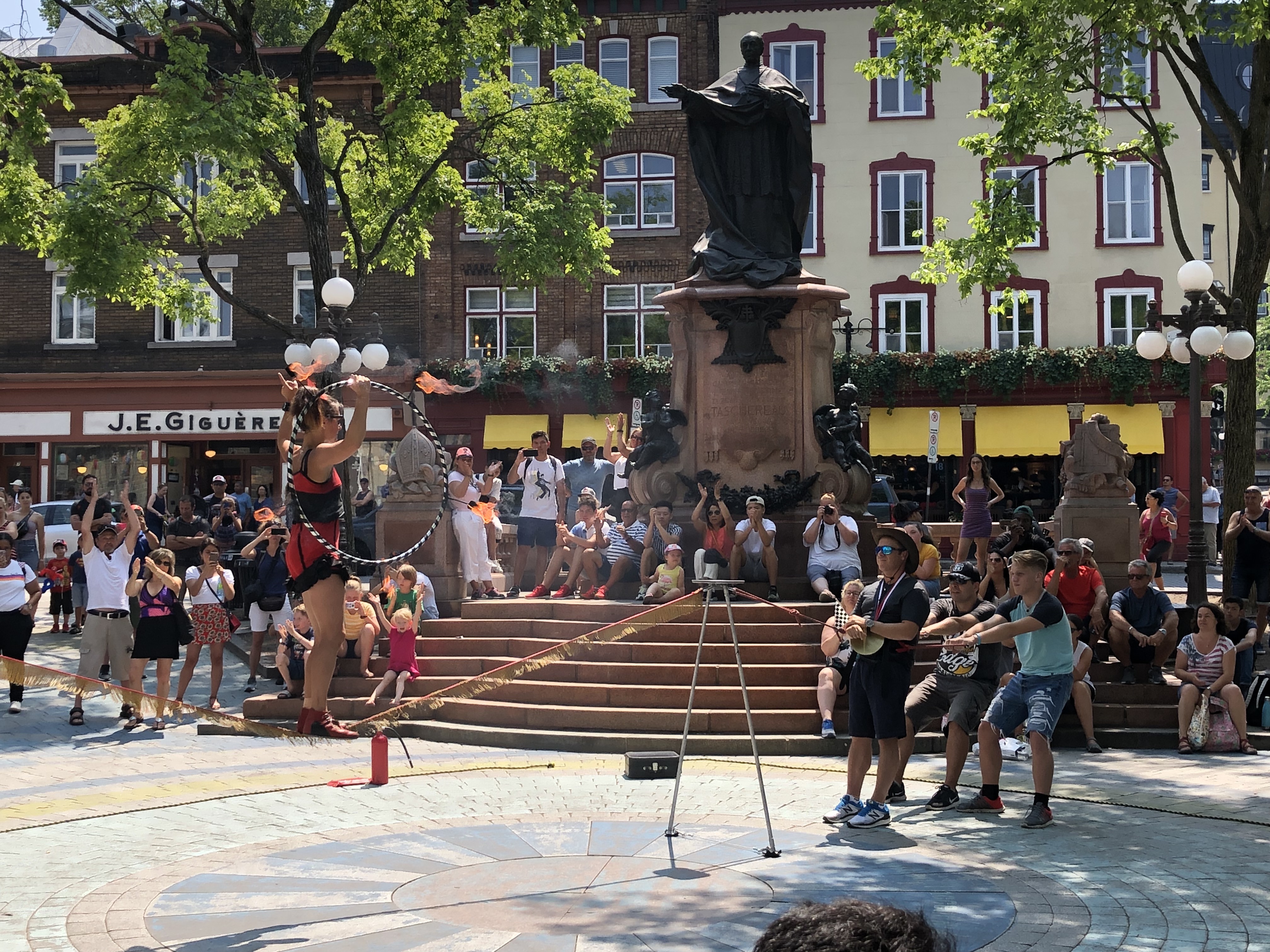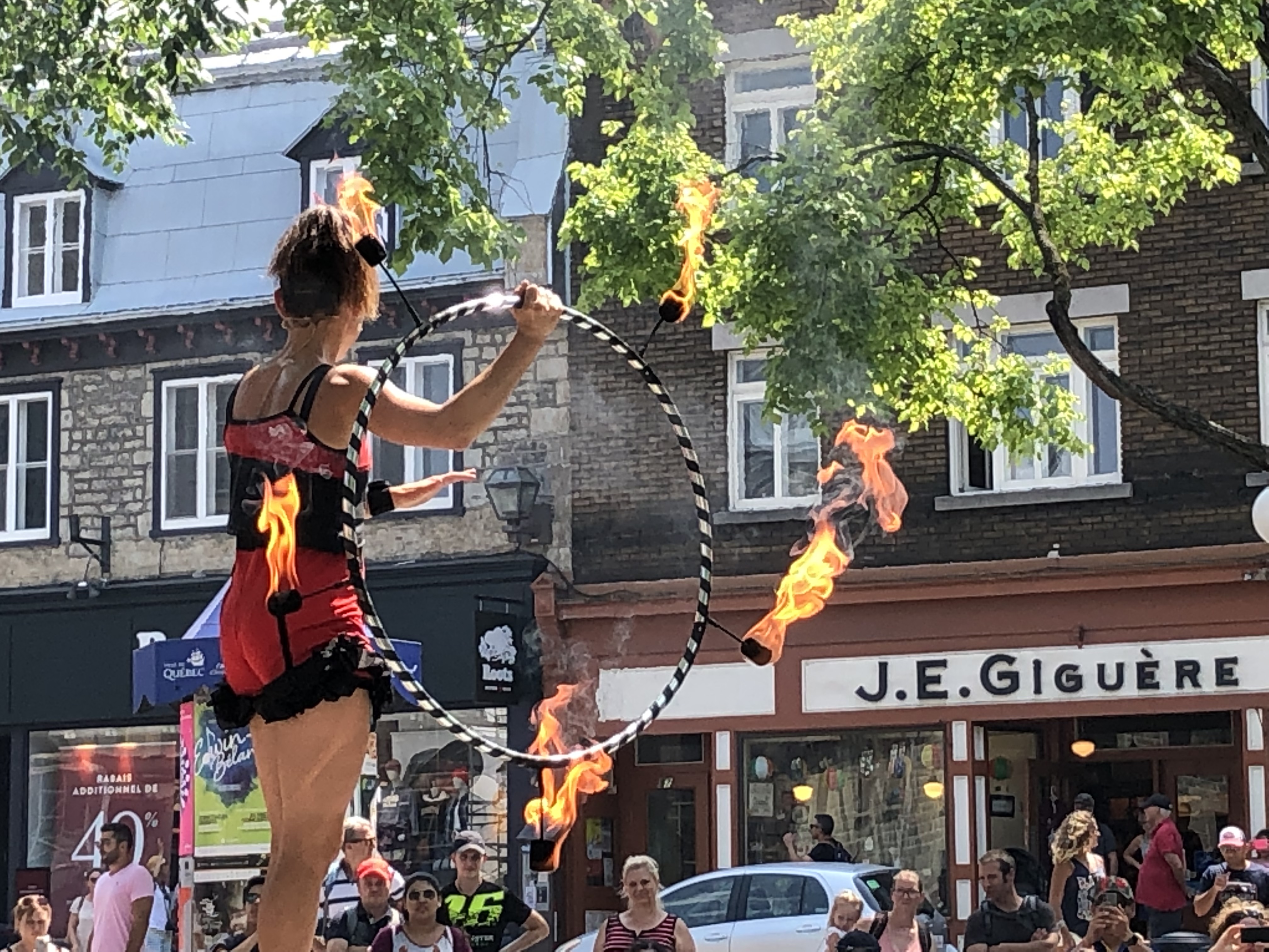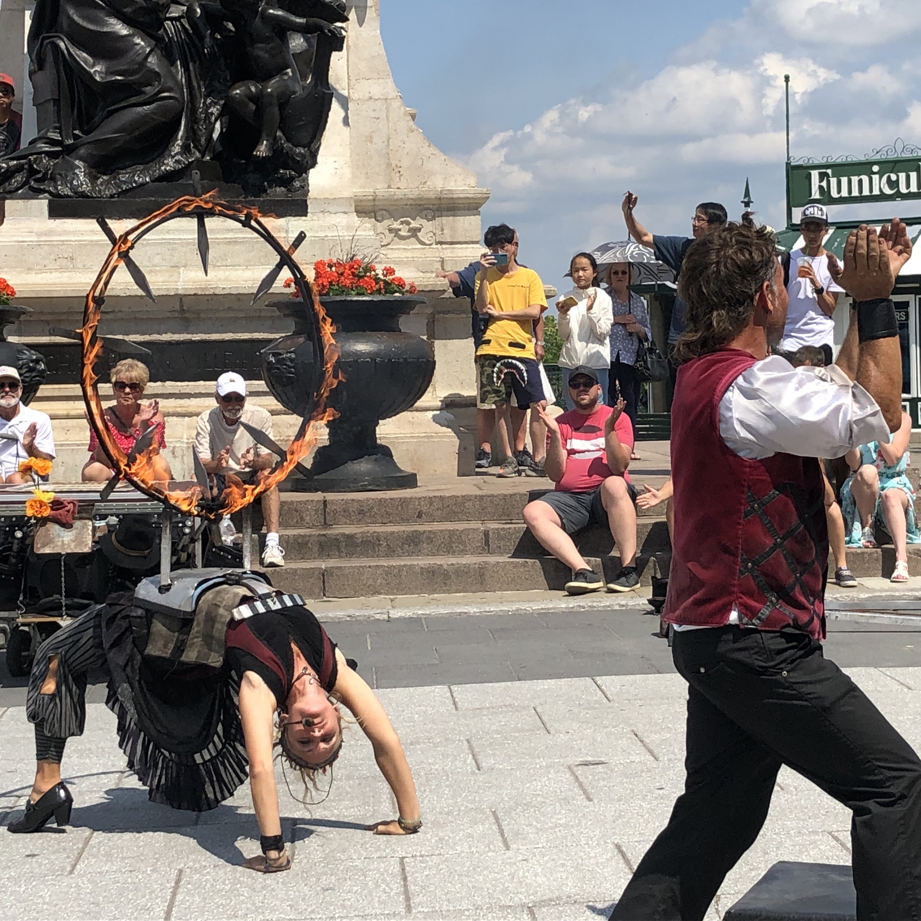 The tightrope walker was a great entertainer, equaled perhaps by a couple of acrobats near the Chateau Frontenac who juggled knives and fiery batons and even fell into a burning ring of fire.