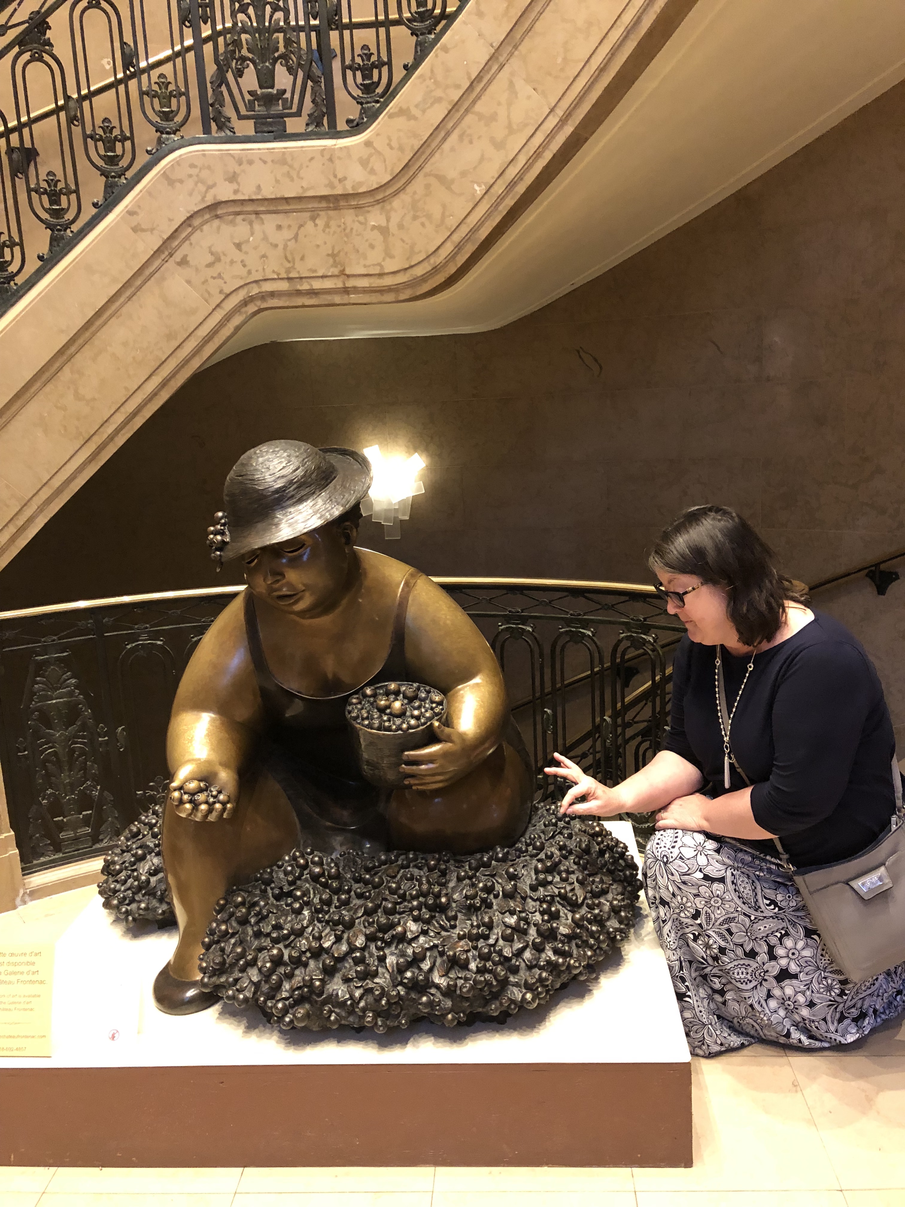 The Chateau Frontenac (in the pictures above) displays art in every nook and cranny, from what we could see. Sculptures, painting, topiaries, jewelry, designer clothing — it’s amazing! We didn’t even stay there, so take time to tootle around the lobby and shops on a trip to QC to see genuine works of art from around the world.
