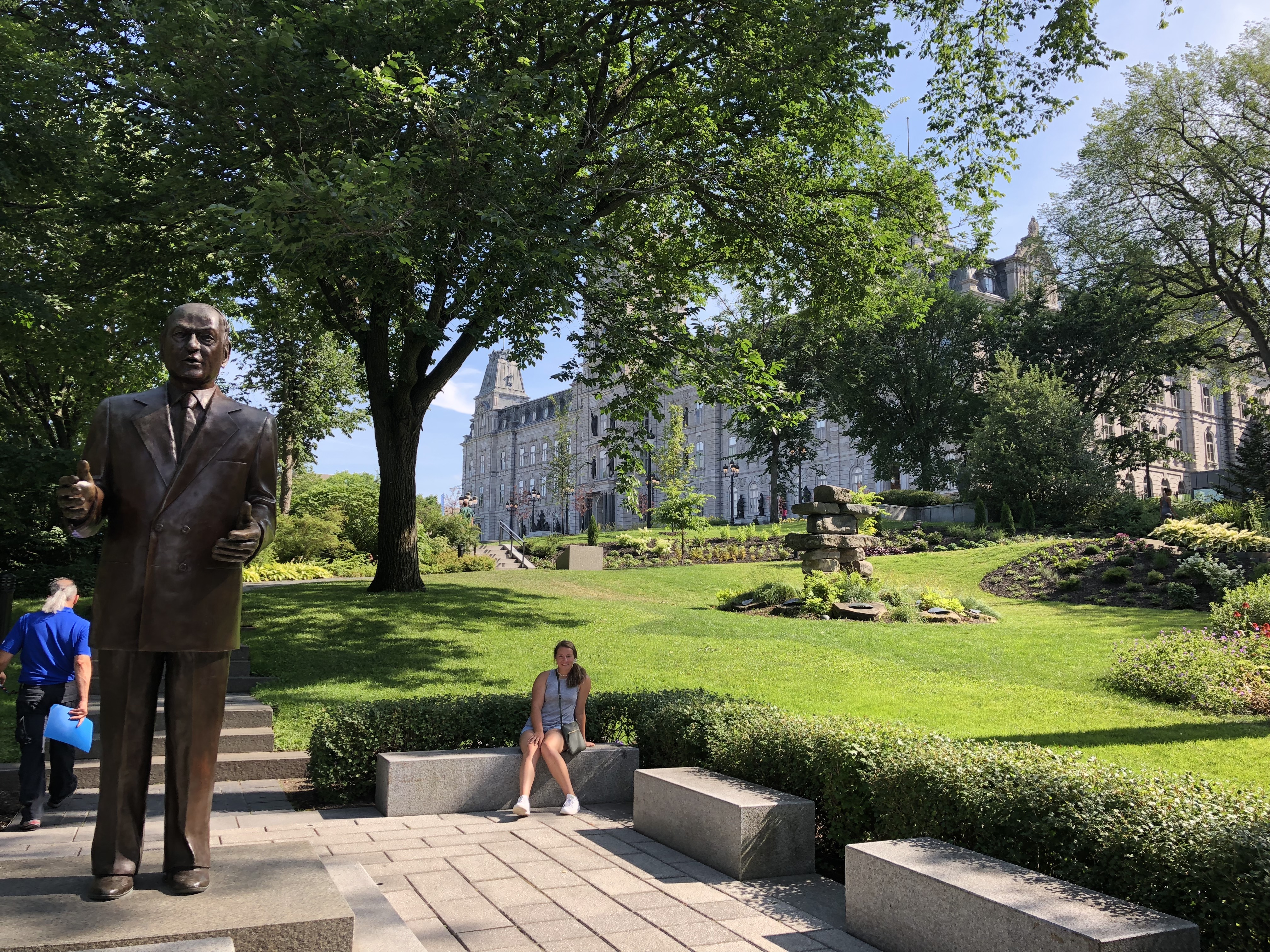 All over town, beautiful monuments represent historic and cultural events in Quebec. The photo just above is the parliament building and gardens with one of the many statues of prime ministers of the past.