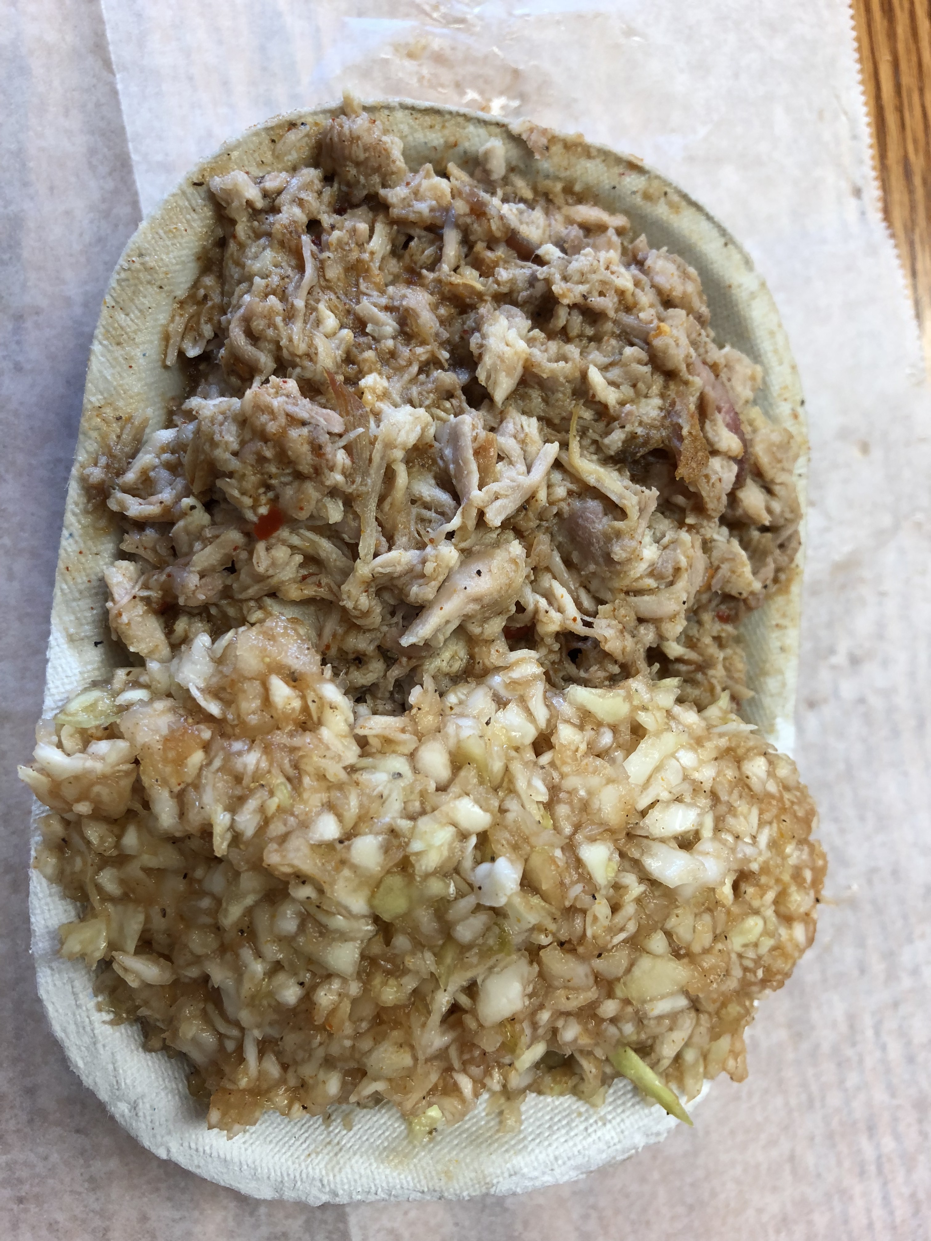 It deserves every award, every accolade. DELISH! The pork shoulders are slow-roasted over hickory or oak coals for nine hours and seasoned to perfection. With a bite of the tangy coleslaw, the experience is crazy good. But with a bite of the lightest, fluffiest, tastiest hush puppies ever made, dipped in honey, the experience is Cackalacky crazy good!